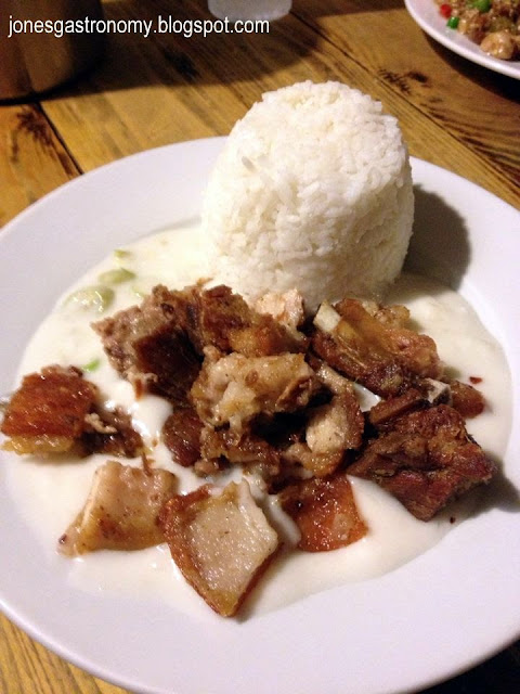 At first sight, it was a hit. The pork was gloriously gleaming in its oily majesty. For a budget meal, the serving size of the viand was surprisingly abundant. Also, it was fairly distributed in fat and meat, although I preferred the former of course. I put my low-pork diet on hold for that day as I indulged. The skin was perfectly executed - crisp all the way through, charred in some parts to give that grilled taste, and golden brown in the rest to exude the familiar lechon kawali texture. The meat was firm yet easy to chew, flavorful in itself. The gata was a totally different story. It was obviously either straight from the can or the tetra pack. I would have preferred fresh coconut milk, and then simmered slowly in the spices of the red siling labuyo. That would have made this version immaculate. Nevertheless, the bagnet was already flawless.